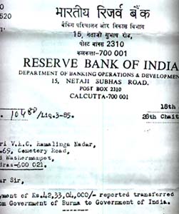 Hind Bank in Rangoon. Chelliah Nadar's deposit at that time stood at Rs 423.3